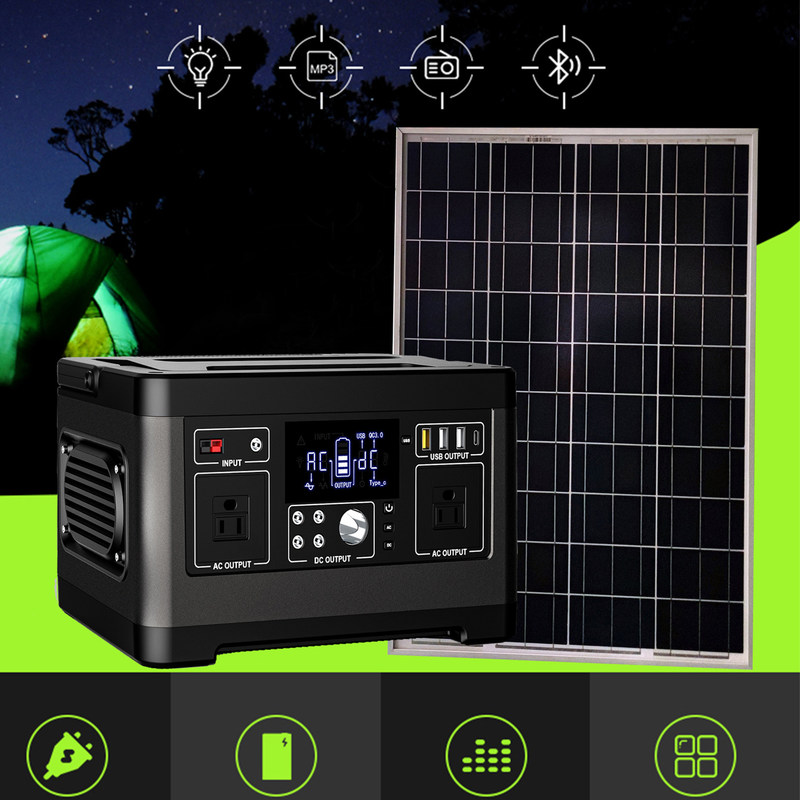 โรงงานในจีนจัดหาสถานีพลังงานแสงอาทิตย์แบบพกพาขนาด 500W พร้อมการชาร์จไมโครอินเวอร์เตอร์ออนบอร์ด